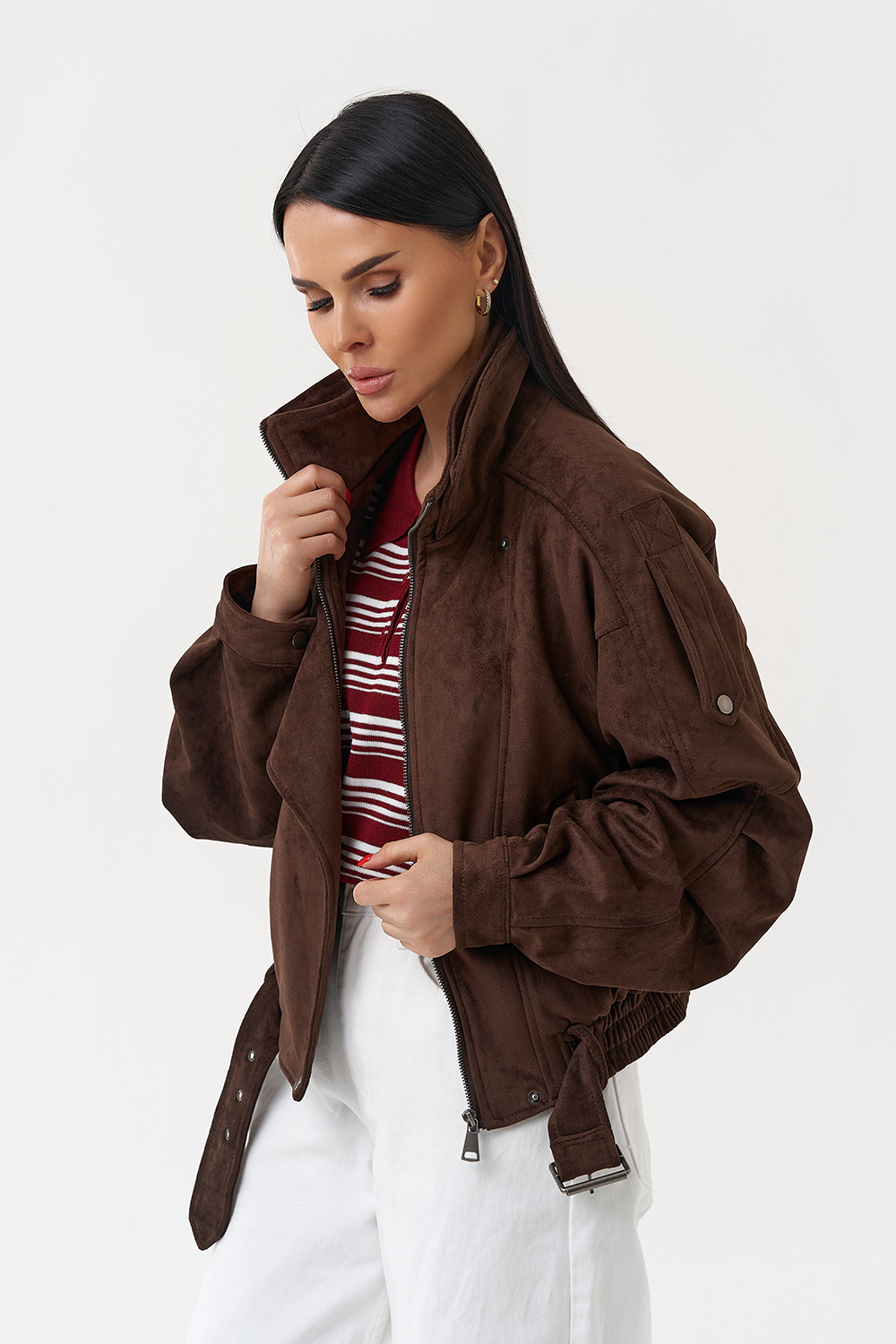 Женская куртка бомбер из эко замши коричневого цвета артикул niznij-tagil30446 и другие товары категории Женские куртки и плащи из экокожи доступны в каталоге интернет-магазина Малина Сибериан в Нижнем Тагиле по цене от 1400 ₽. Ознакомьтесь с подробными характеристиками и описанием, а также отзывами о данном товаре и нашей компании. Делайте правильный выбор и заказывайте Женские куртки и плащи из экокожи онлайн.