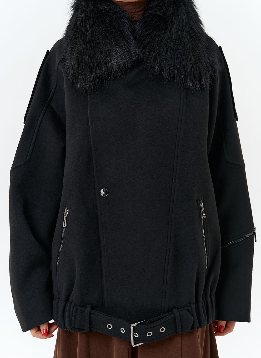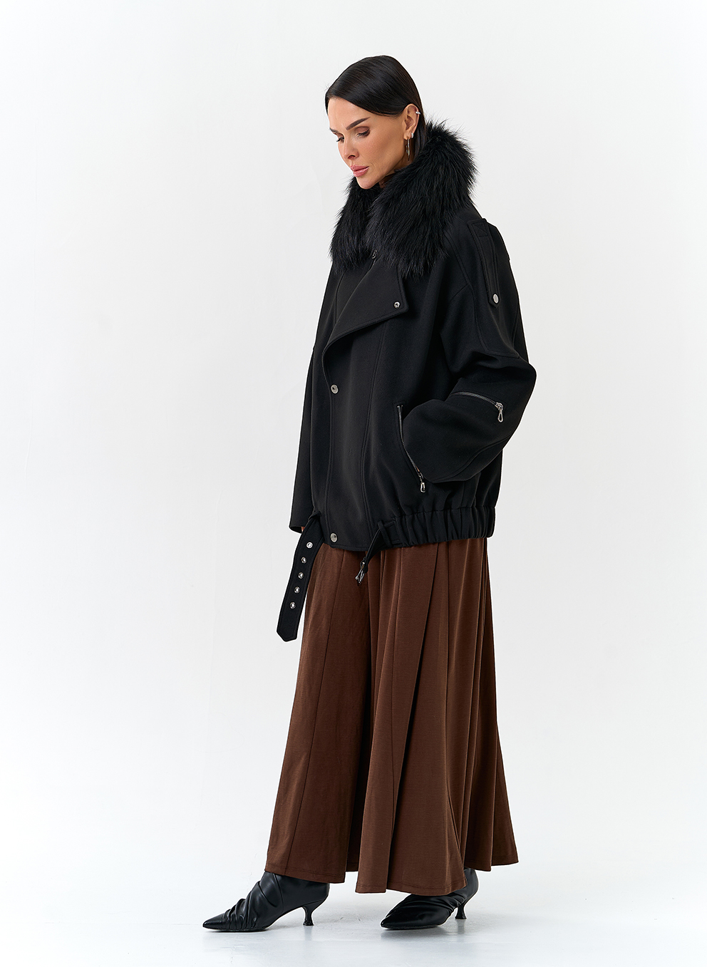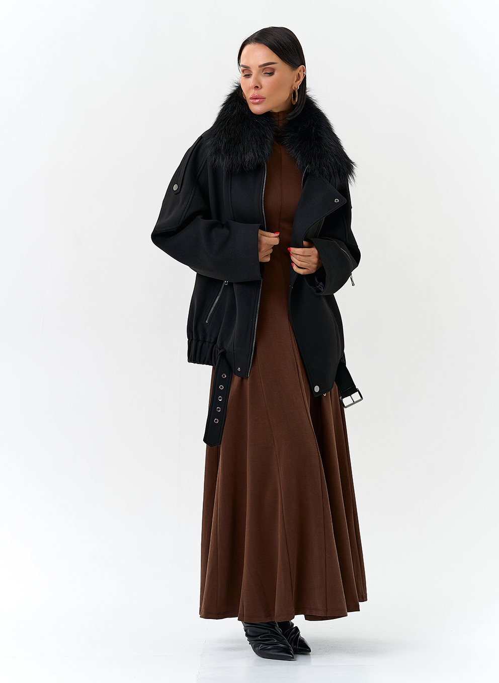 Отделка воротника - съемный мех лисы, цвет черный
